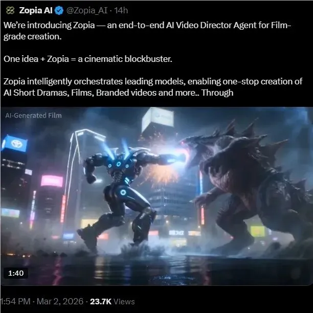 6、一句话变爆款短剧!Zopia重磅亮相:多Agent协作一键交付电影级成片,24小时无人值守自动化生产