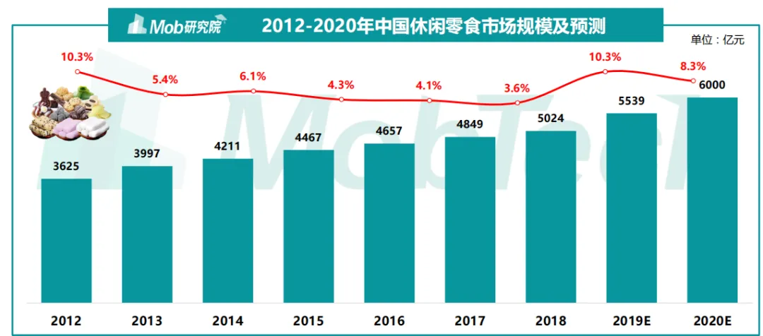 2012-2020年中国休闲零食市场规模及预测