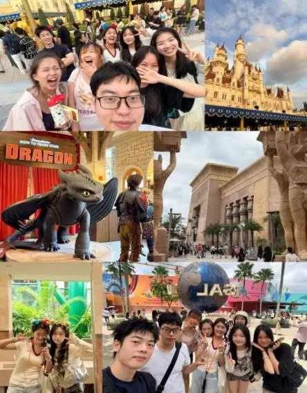 而最让我难以忘怀的,当属第五天在环球影城的欢乐时光。一进入园区,我们就被各种精彩的项目所吸引。过山车的呼啸、水上项目的刺激、与卡通人物的亲密互动……每一个瞬间都充满了欢声笑语。在玩一些比较惊险的项目时,大家互相鼓励,勇敢挑战自我;在观看表演时,我们一起欢呼喝彩,为精彩的演出鼓掌。那一天,我们抛开了所有的烦恼和疲惫,全身心地沉浸在这欢乐的氛围中。