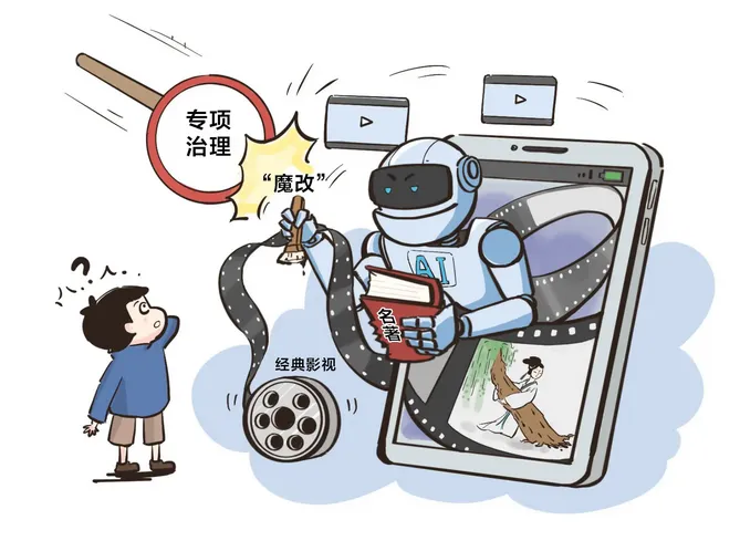 2026年伊始,广电总局在全国范围内部署开展了为期一个月的“AI魔改”视频专项治理工作,累计清理相关违规视频近23000条、处置违规账号100余个。同时,AI魔改是对经典影视、动画片等内容进行的颠覆性篡改、魔性解构与低俗化改编,涉嫌版权侵权,亟需予以规制,构建常态化、制度化的长效机制,持续营造健康的网络视听空间。
