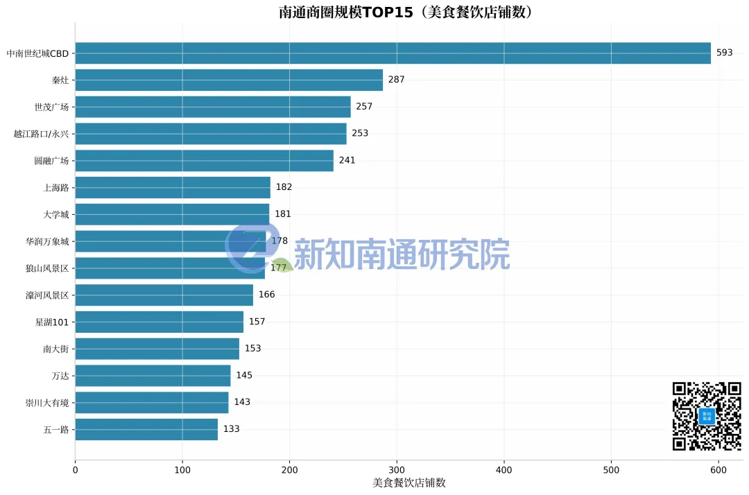 第三梯队(150-200家):上海路(182家)、大学城(181家)、万象城(178家)、狼山风景区(177家)、濠河风景区(166家)