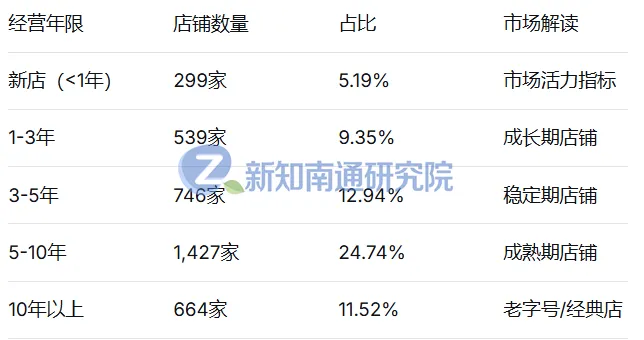 10年以上老店占比11.52%:老字号店铺数量可观,说明本地餐饮文化传承良好