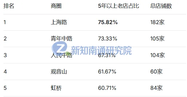 上海路、青年中路、人民中路,老店占比均超65%,呈现出明显的成熟市场特征: