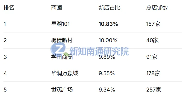 星湖101、华润万象城、世茂广场等商圈,新店占比超9%,显示出: