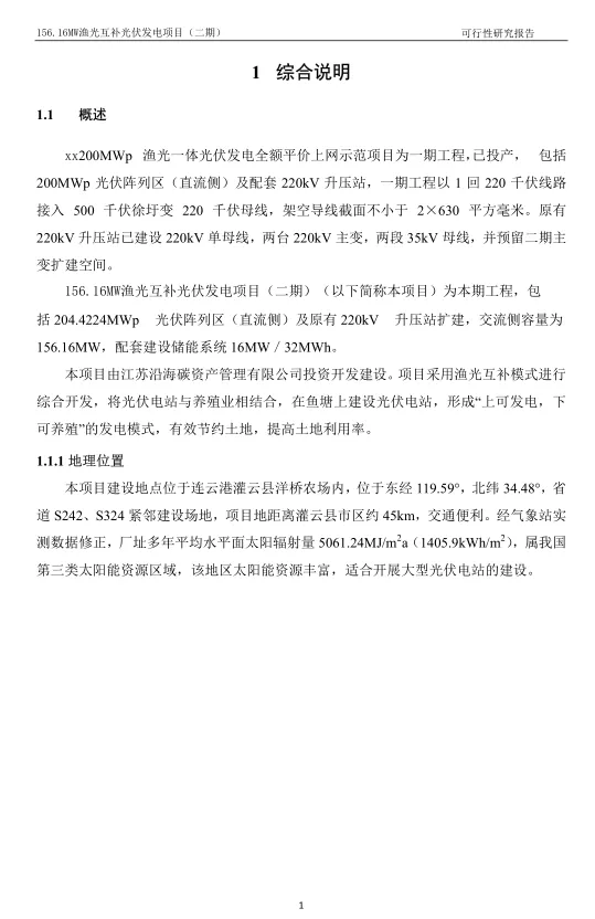 156MW 渔光互补光伏发电项目可行性研究报告.pdf