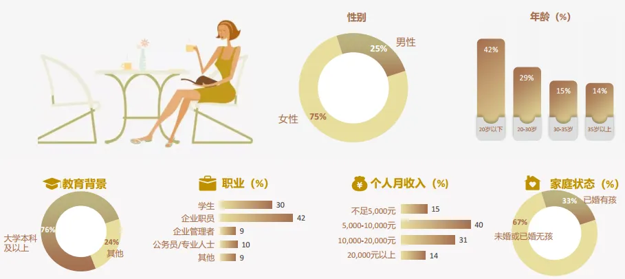 90后女性成为新式茶饮消费的主力军。按婚姻状况分析,未婚或无孩家庭占比近七成。从职业身份看,学生及企业职员占比高达72%。从收入水平分析,月薪五千至一万占40%,一万至两万占31%。