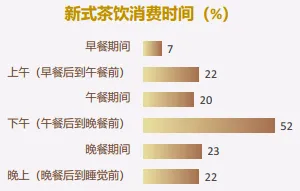 下午(午餐后到晚餐前)是一天当中新式茶饮的主要消费时间,和家人朋友一起逛街和聚会成为了新式茶饮的主要消费场景。