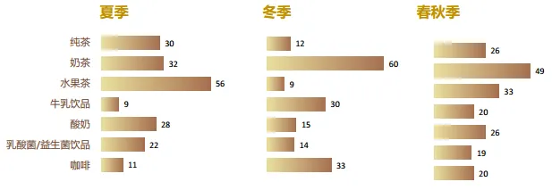 不同季节消费者选择的茶饮品类和茶底有所不同。