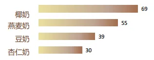 在和茶饮的搭配中,椰奶、燕麦奶成为植物奶基中最受消费者欢迎的种类,主要原因在于更加健康,低脂低热量,搭配范围广泛。