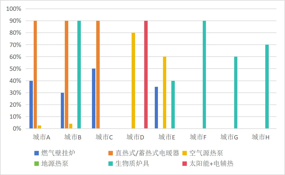 《中国散煤综合治理研究报告2024》调研结果显示,北方清洁取暖的公众意识有了显著提高,空气源热泵销量在北方地区明显上升,处于刚性需求增长阶段;河北早期“煤改气”用户,在没有购置补贴的情况下,自费购买高效节能冷凝式燃气采暖炉的用户逐渐增多。在河北、山东、山西等地,经济条件较好的用户主要选择安装空气源热泵取暖,尤其是新房用户,安装“空气源热泵+地暖”的用户占比较高。