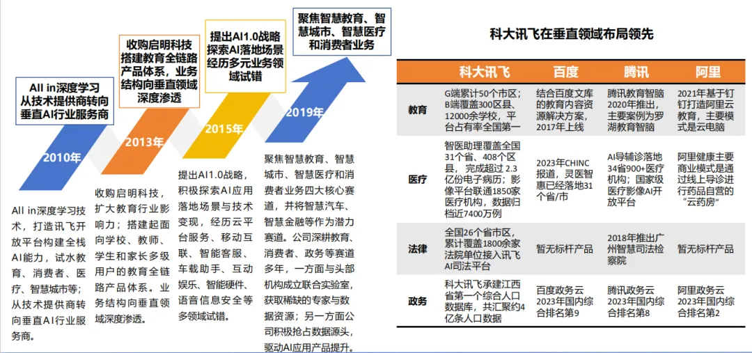 但价格战仅是表象,头部厂商已开启差异化竞争:百度文心聚焦知识增强与创作力,阿里通义以平台思维降低使用门槛,科大讯飞深耕教育、医疗垂直领域,国内已公布大模型超300个,同质化竞争中差异化成为突围关键。