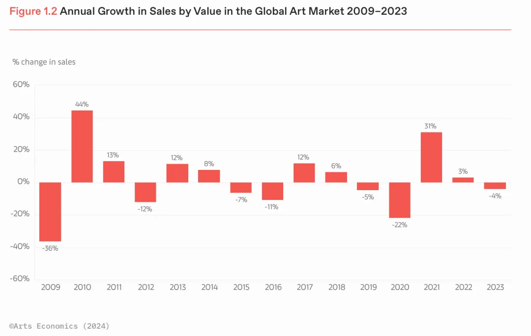2009-2023年全球艺术品市场销售额年度增长