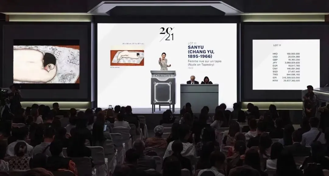佳士得2023年秋拍“二十及二十一世纪艺术晚间拍卖”上,常玉的《花毯上的侧卧裸女》以1.873亿港币(约2420万美元)的价格成交,创下了中国市场2023年现代艺术拍卖的最高纪录。吴冠中的30件作品每件都以超过100万美元的价格成交,其中22件在中国内地成交。