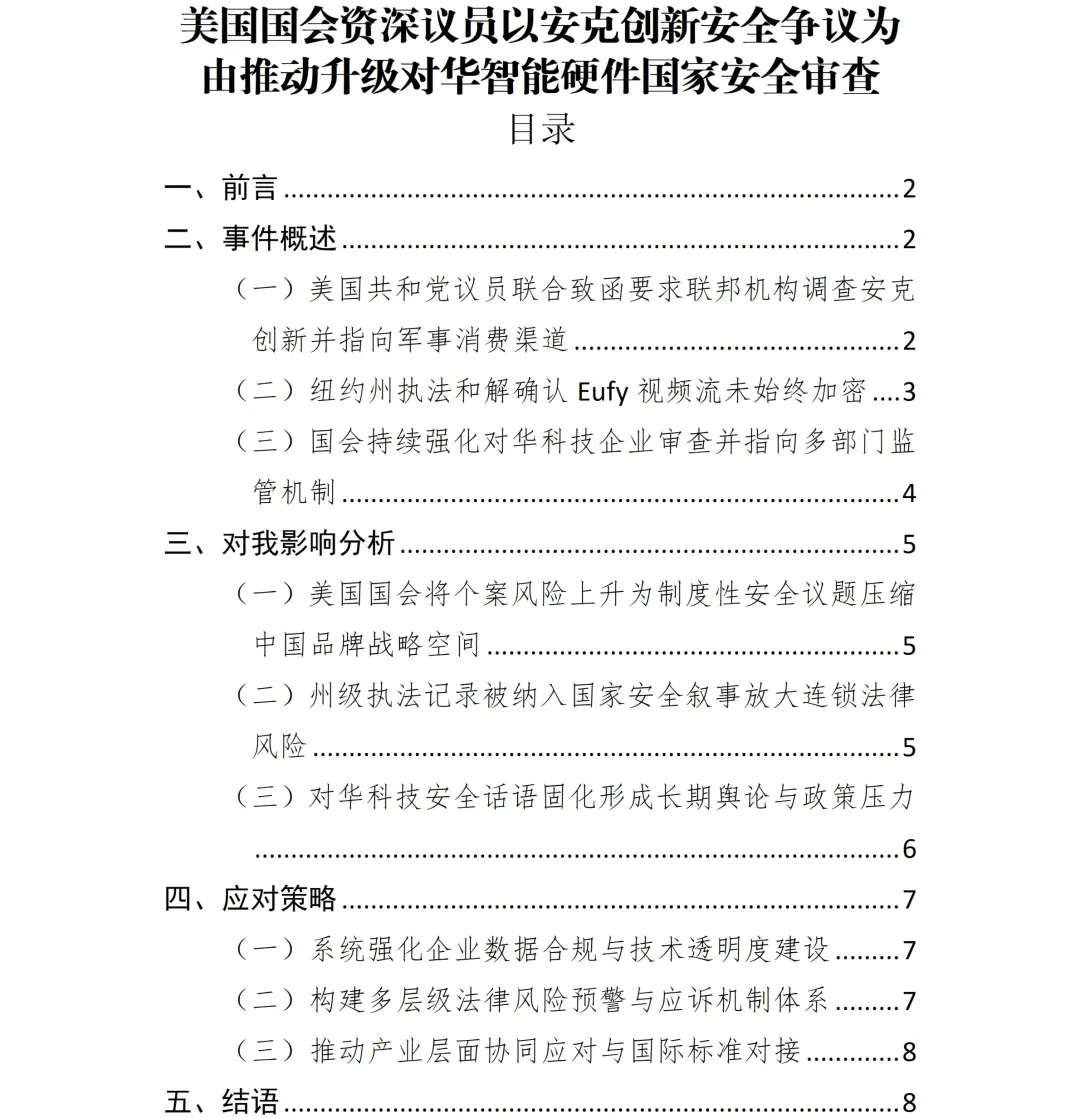 2026年3月2日,美国众议院共和党议员埃莉斯·斯特凡尼克与参议员里克·斯科特公开致函商务部长及联邦通信委员会主席,要求对安克创新启动正式调查。信函将企业安全漏洞、数据流向、所有权结构及军人销售渠道问题并列置于国家安全框架之下,并直接以“外国监控风险”界定其潜在影响。
