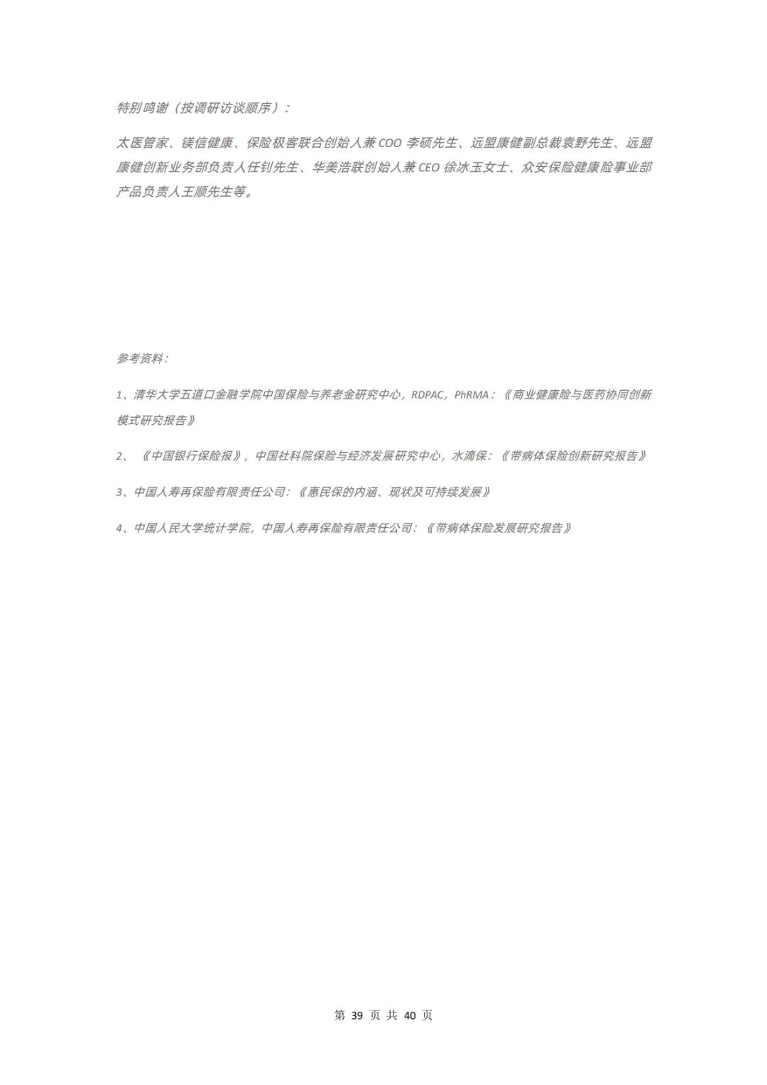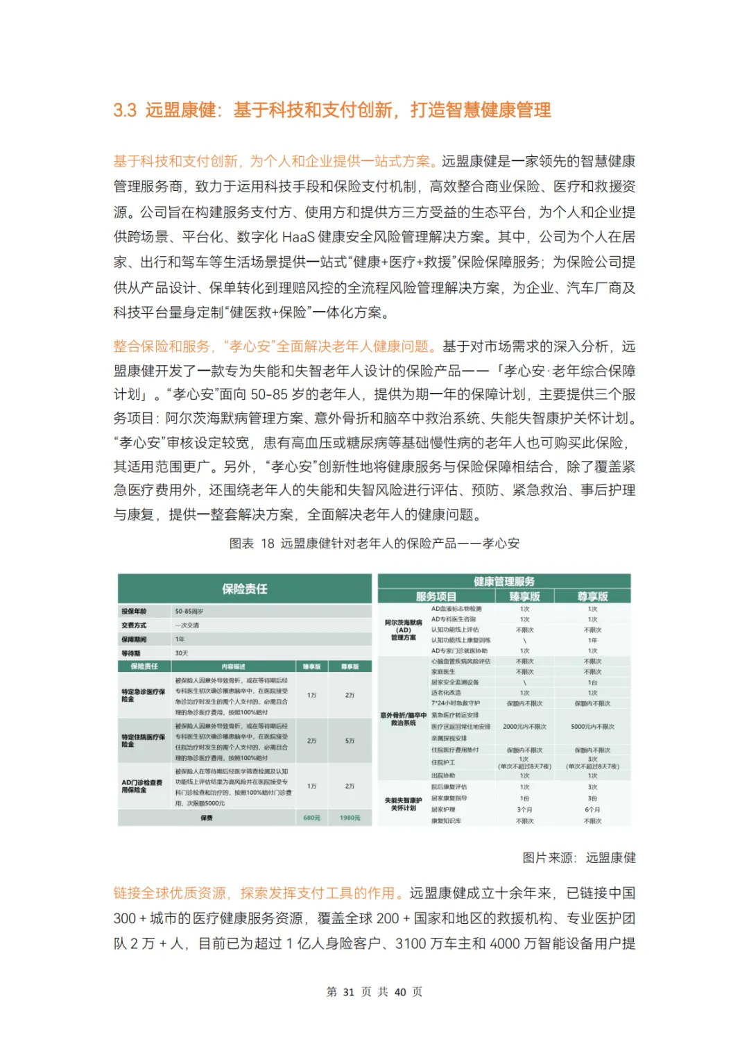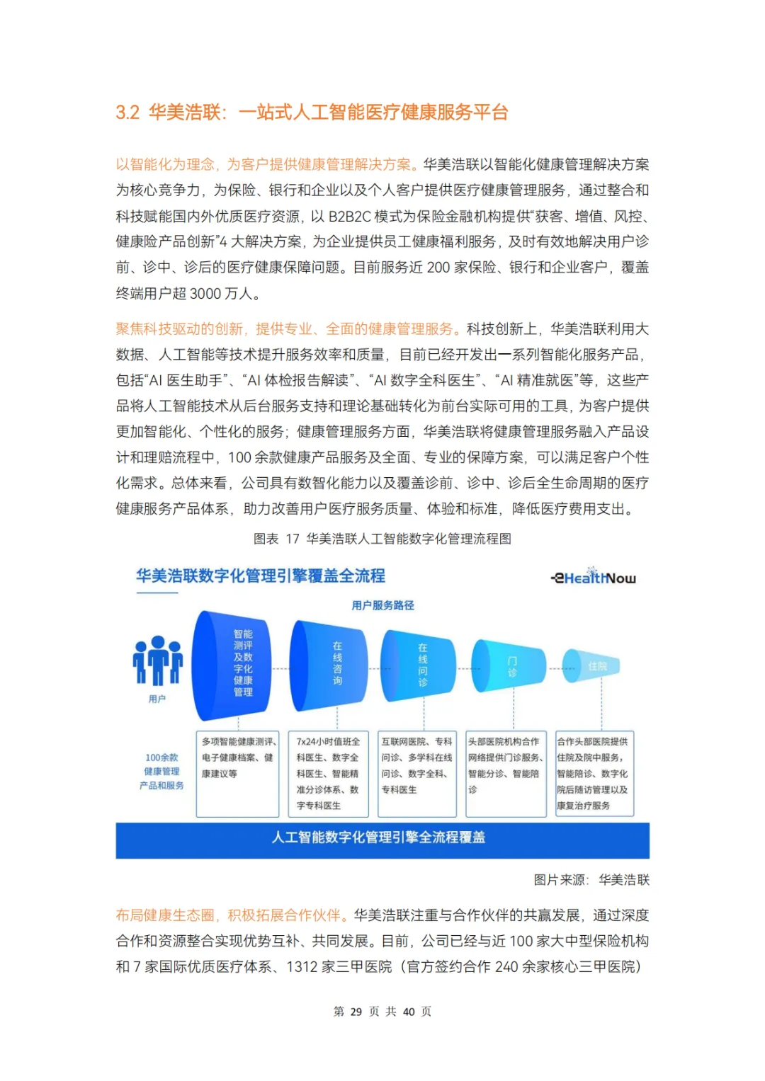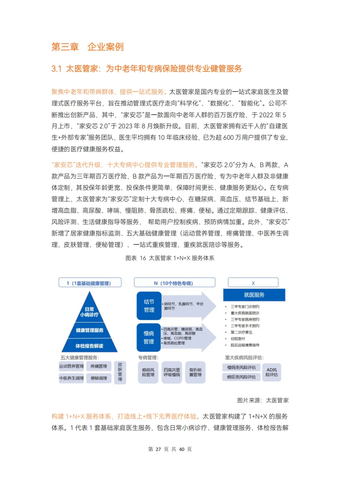而对保险公司而言,在产品、服务、科技、支付环节上分别存在哪些痛点,健康管理公司又在其中扮演怎样的角色?本报告通过调研 12 家企业、近 20 位专家,对健康险行业的挑战和创新解决方案展开分析,并得出以下结论: