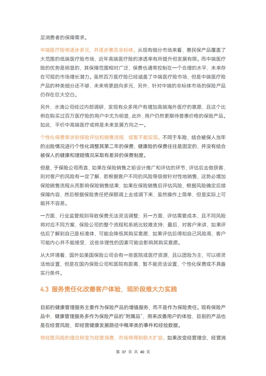 服务责任化将经营风险的理念转变为经营消费,把赔付金额转变为赔付服务,让客户在住院期间体验更好、享受更及时,如此市场将得到极大扩容。