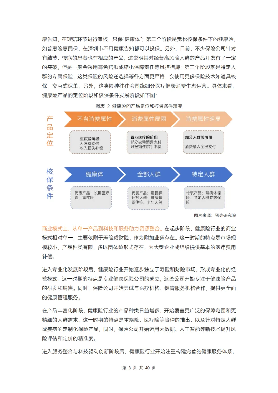 健康险产品含金融属性和消费属性,近年的发展主要是其消费属性的延展;从核保条件看,健康险的发展经历了“严格核保-宽松核保-特定核保”的阶段。