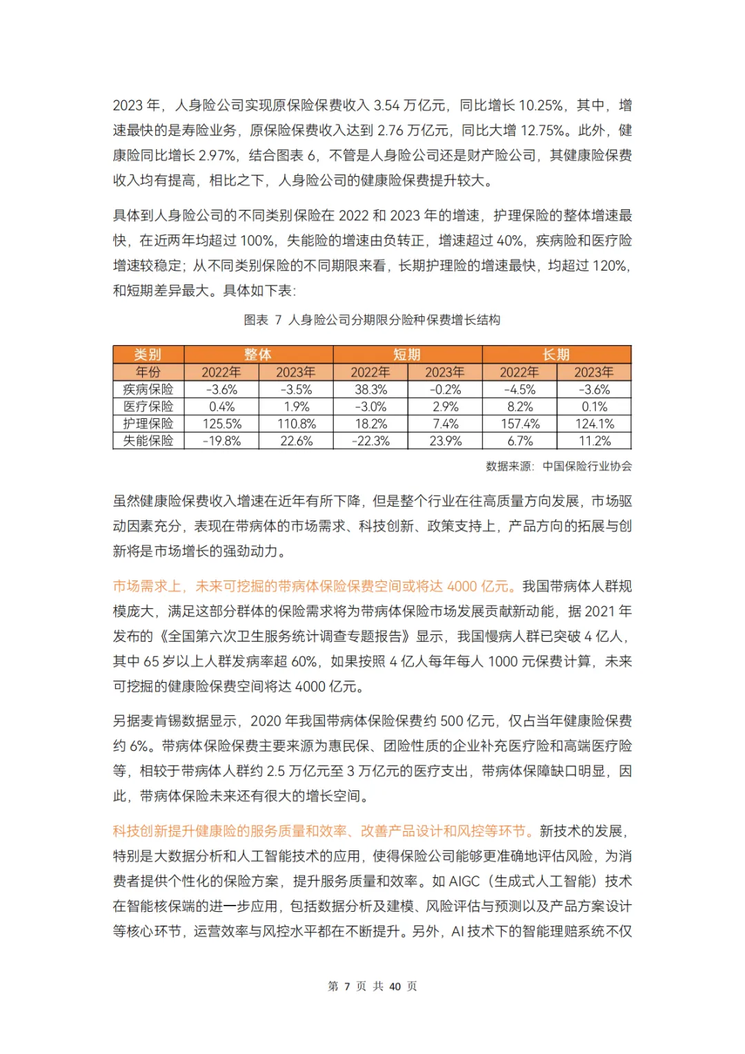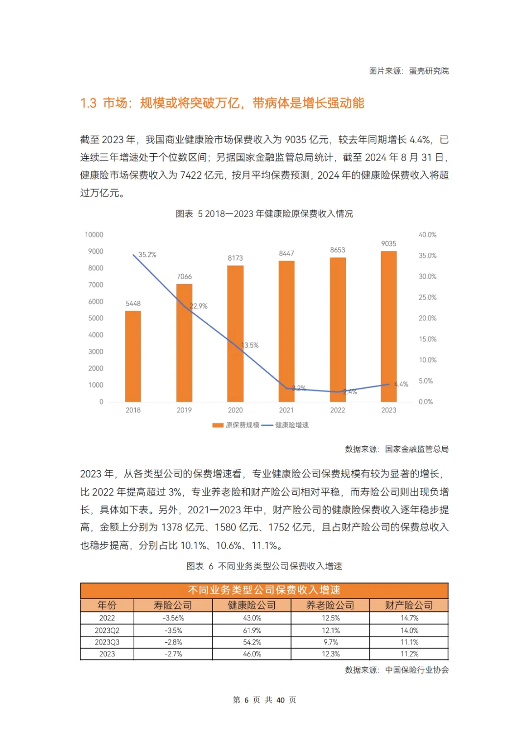近年,健康险的渗透率有提升但增速变缓,而带病体的巨大需求却未被满足,据测算,这部分人群未来可挖掘的健康险保费空间将达 4000 亿元;另一方面,健康险产品同质化严重、中端医疗险种类不够、客户的理赔和健康管理服务等体验待改善。