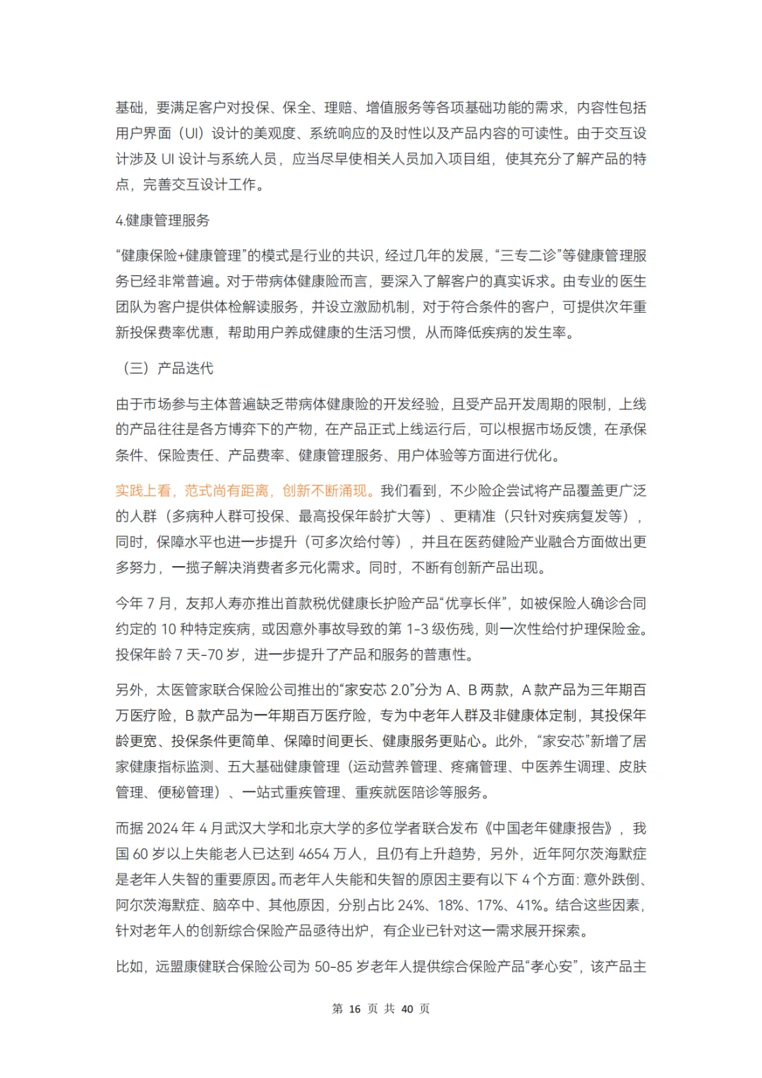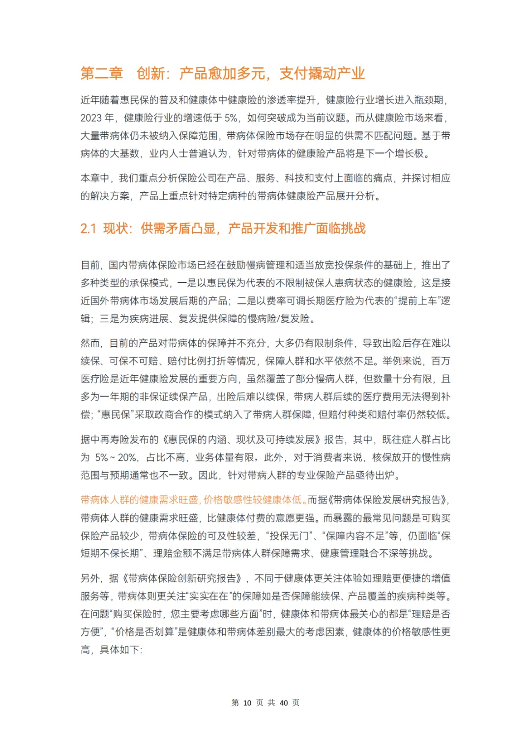 供需之间的矛盾是健康险规模再增长的主要瓶颈,围绕带病体产品的开发和重体验的服务打造是供给侧改革的核心,创新亦有萌发,如综合保险产品、一站式服务、专病中心、服务智能化、服务责任化的尝试等。