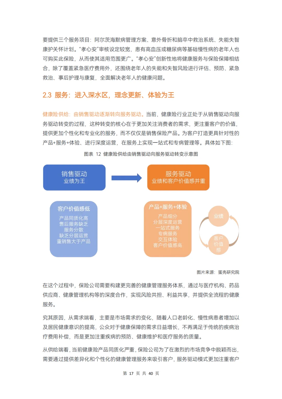 健康险供给正经历由销售驱动逐渐转向服务驱动的过程,业绩和客户价值感并重,“保险+健康管理服务+科技”已成标配,主动管理、专病管理、一站式服务、重体验成为保险公司新风尚。