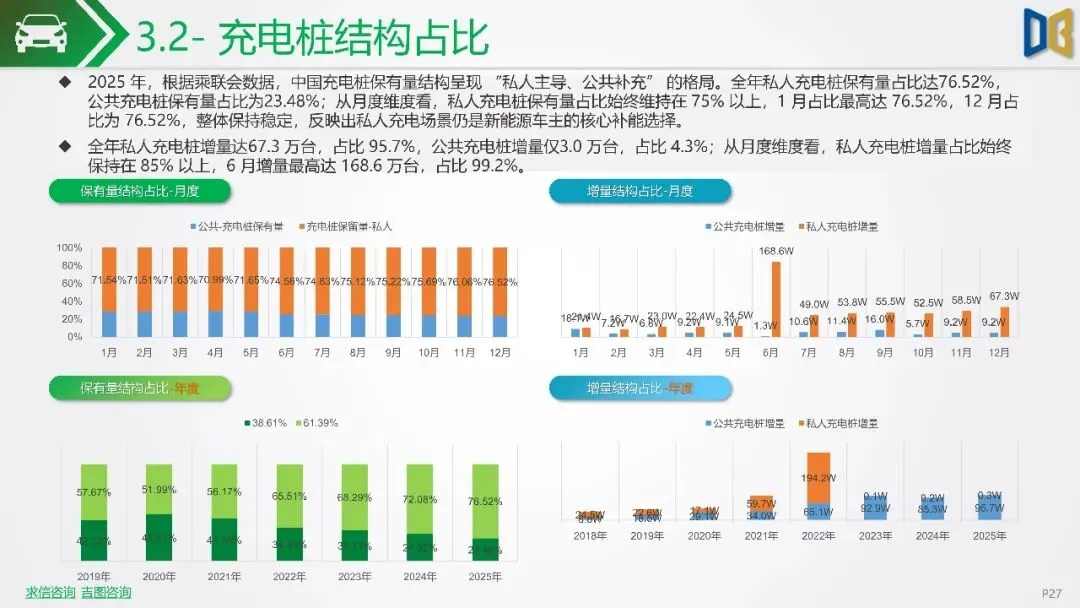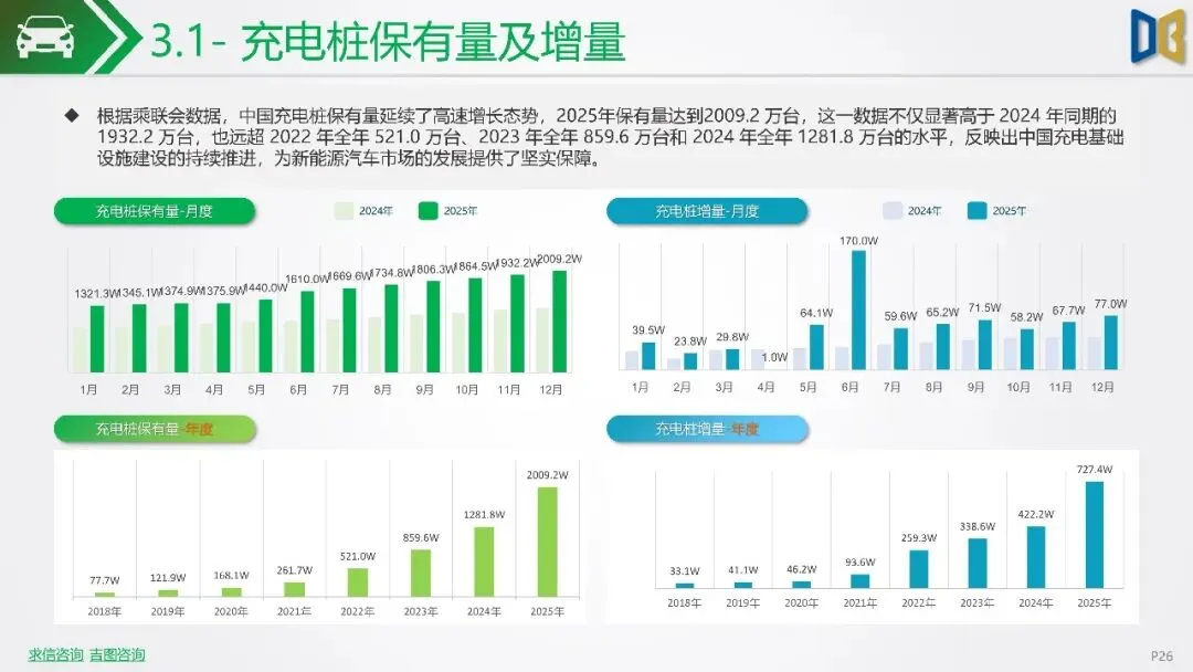 基础设施方面,全国充电桩保有量突破2009万台,私人桩占比超76%,当月新增39.5万台中私人桩占九成以上,"私人主导、公共补充"格局稳固,为市场长期发展提供坚实支撑。