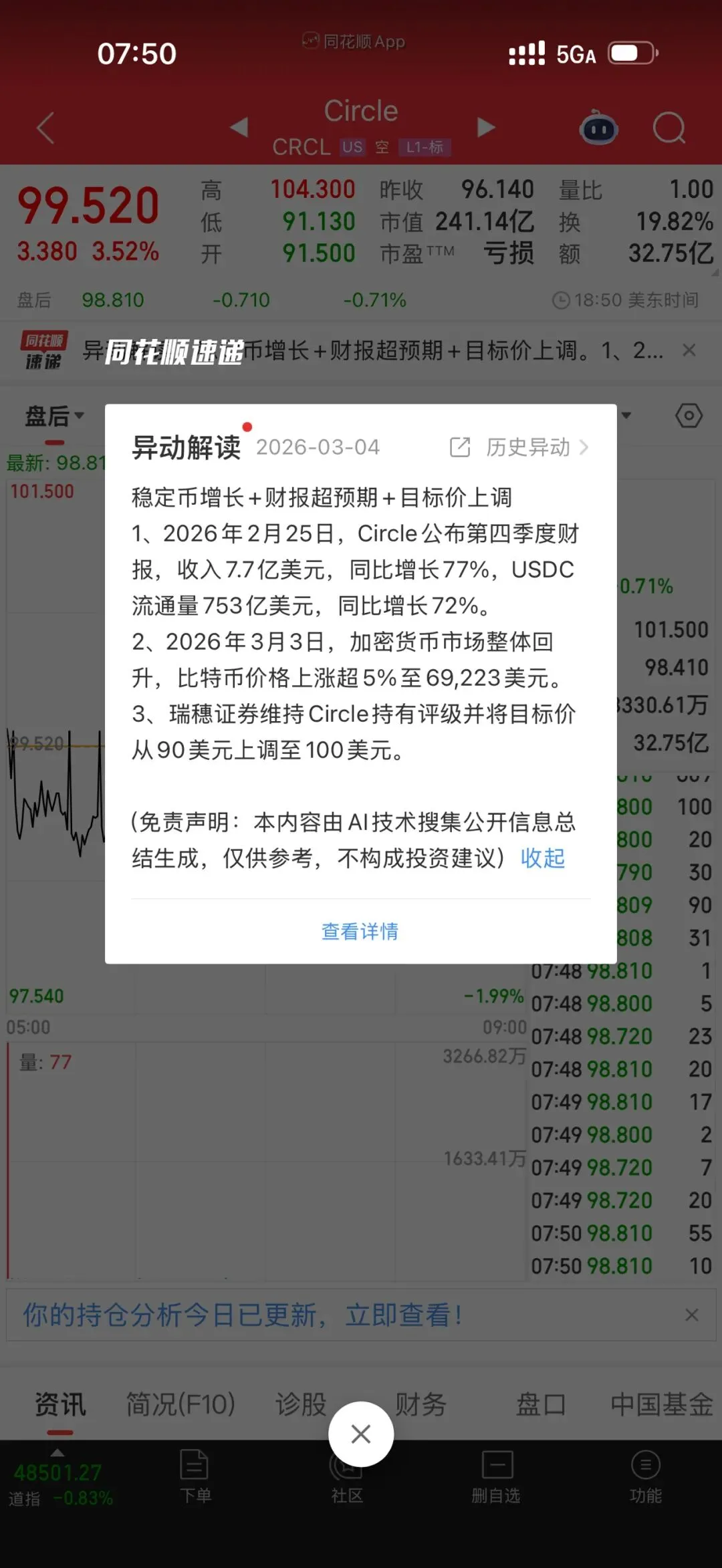 瑞穗证券将Circle的目标价从90美元上调至100美元,这份上调,不仅是对过往业绩的肯定,更是对未来增长潜力的看好。目标价的上调,源于三个核心逻辑:一是USDC流通量的持续增长带来的手续费收入提升;二是合规框架下的市场份额扩大;三是在DeFi、跨境支付等场景中的应用拓展。这与我对Circle的长期投资逻辑高度契合。