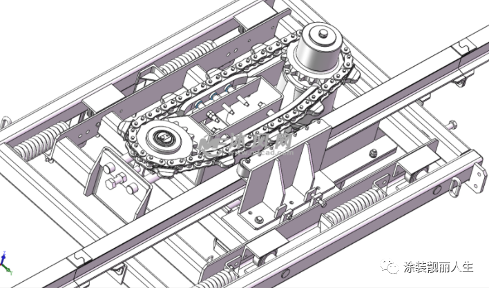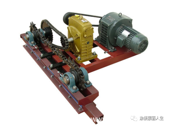 驱动装置一般由电机、变速箱、传动履带和机架等主要部件组成。驱动装置一般为无级调速传动,所选择的范围应该满足涂装工艺及生产纲领的要求对于简单的输送线路,如链条长度≤200m,轨道水平与垂直转弯角度之和<180°,一般采用单驱动,即只设一套驱动装置。对于复杂线路则应进行链条张力计算,以检查链条最大张力是否超过允许张力。