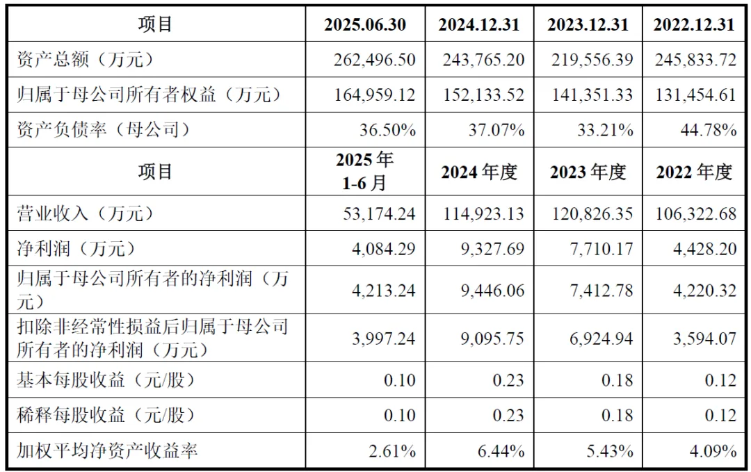 公司资产负债率(母公司)从2022年的44.78%降至2025年6月30日的36.50%,偿债能力逐步增强。归属于母公司所有者权益持续增长,从2022年的131,454.61万元增至2025年6月30日的164,959.12万元,财务结构不断优化,为公司持续经营和发展提供了坚实的资金保障。
