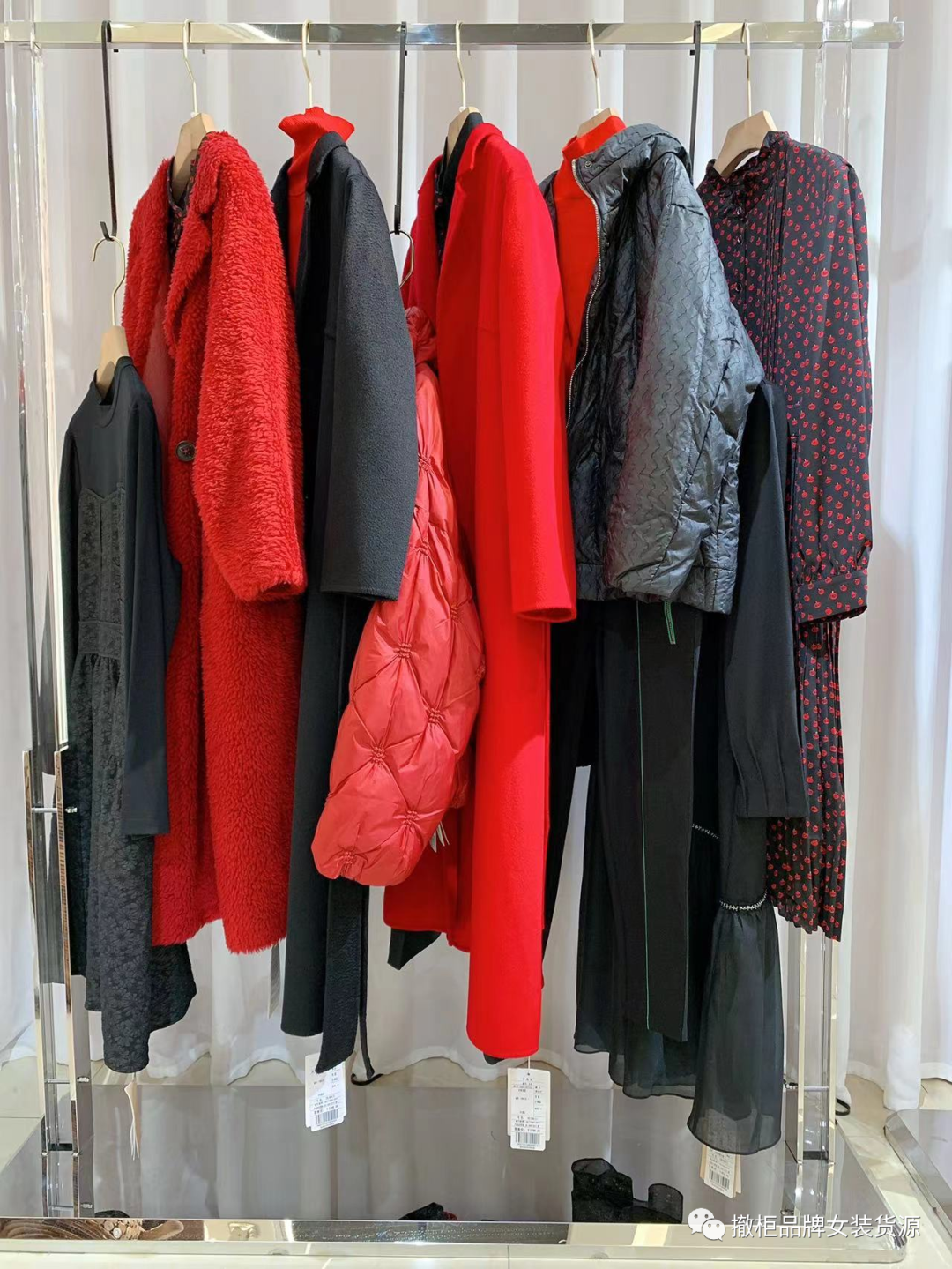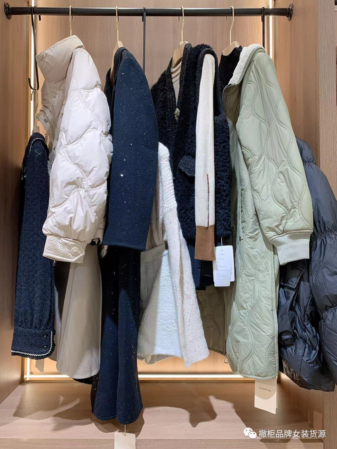 货品比例: 羽绒服16%,双面呢/大衣/颗粒绒21.5%,连衣裙13%,外套1.5%,上衣/衬衫/毛衫28.5%,裤裙19.5%