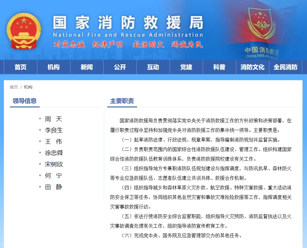 国家消防救援局领导班子调整