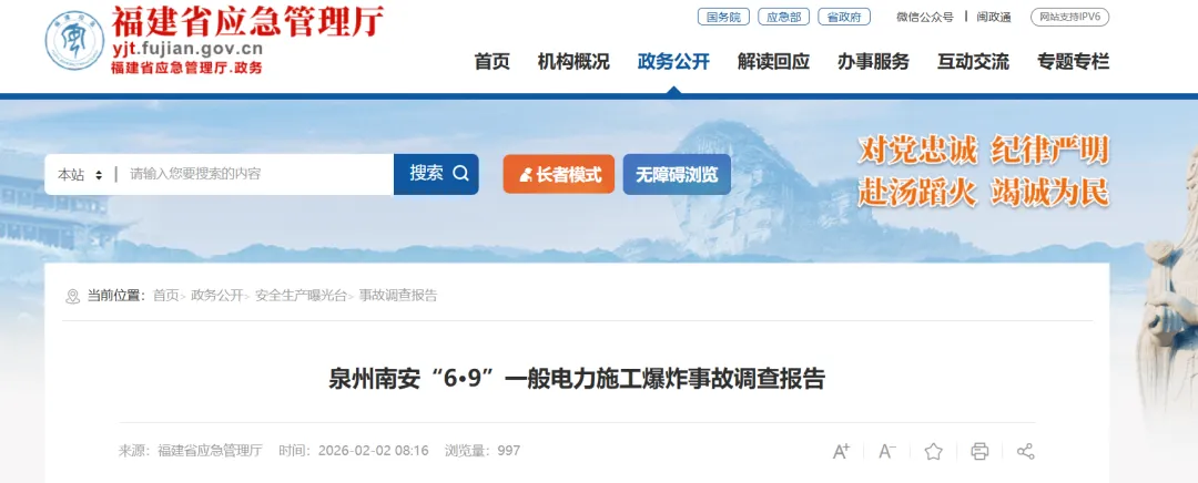 2月27日,应急管理部举行新闻发布会,应急管理部调查统计司司长李豪文表示,社会公众对生产安全事故调查结果高度关注,事故调查报告全文公开,既是保障公众知情权、监督权的需要,又是强化警示教育,提升安全治理效能的重要途径。