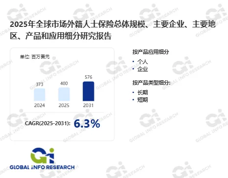 据环洋市场咨询(Global Info Research)调研团队最新报告《2025年全球市场外籍人士保险总体规模、主要企业、主要地区、产品和应用细分研究报告--环洋市场咨询(Global Info Research)》显示,2024年全球外籍人士保险收入大约373百万美元,预计2031年达到576百万美元,2025至2031期间,年复合增长率CAGR为6.3%。