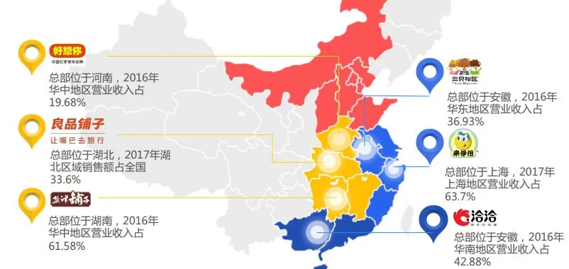 ●二线城市更有机会培育品牌:休闲零食产品及受众天然有着本土性、地域性特征,具有鲜明地方特色的二三线城市较高度都市化的一线城市更容易诞生休闲零食品牌。电子商务在很大程度上打破了地域壁垒,使区域品牌有机会成长为全国性品牌,但随着线下实体店的价值重提,品牌仍有各自坚守的大本营。