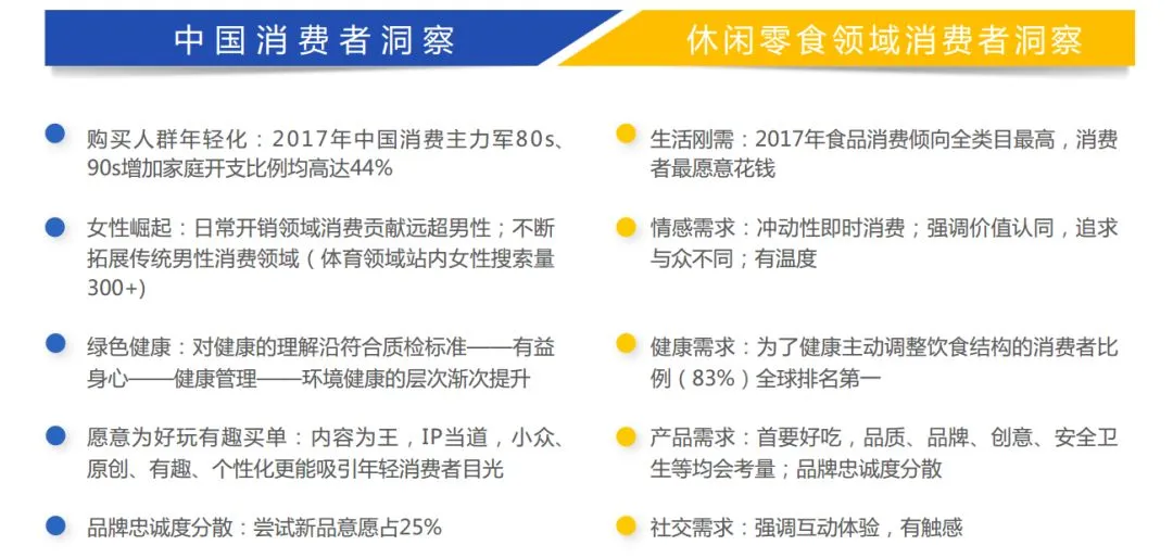 1)新零售时代,谁在消费休闲零食:消费者需求从以购买生活必需为核心变成以生活方式及价值体现为核心。