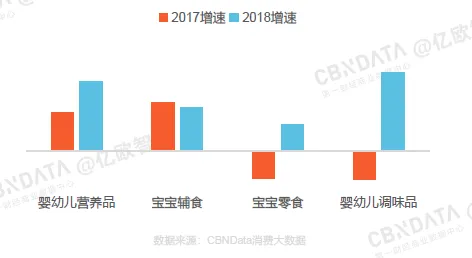 从各细分品类销售增速来看,婴幼儿营养品增长态势良好,宝宝辅食2018年增速略有放缓,婴幼儿调味品2018年的增速较高。