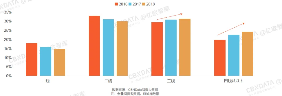 2016-2018年辅食营养品消费者城市线级分布
