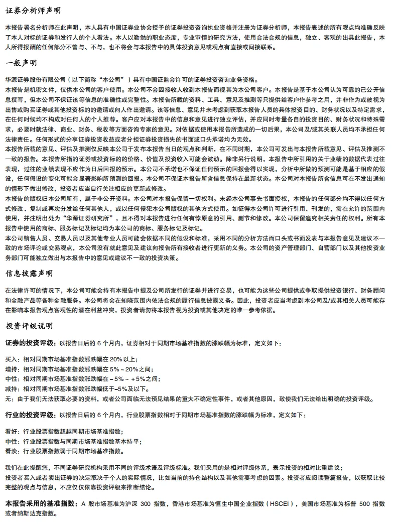本公众号仅是转发华源证券已发布报告的部分观点,所载盈利预测、目标价格、评级、估值等观点的给予是基于一系列的假设和前提条件,订阅者只有在了解相关报告中的全部信息基础上,才可能对相关观点形成比较全面的认识。如欲了解完整观点,应参见完整报告。