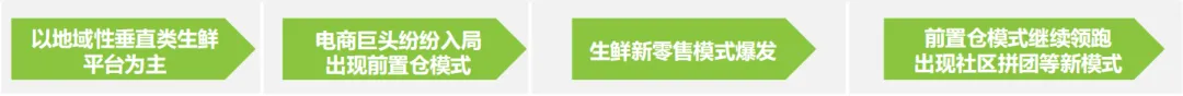 中国生鲜电商市场发展早期以地域性垂直类生鲜平台为主,随后,生鲜电商受到资本方的关注,同时电商巨头纷纷入局,行业快速发展,但由于生鲜电商面临高昂的物流成本及运营成本,部分中小型生鲜电商企业倒闭或被并购。现阶段,生鲜电商仍处于模式探索和高速发展期,尚未出现成熟的盈利模式,随着前置仓模式的持续火热,以及线上线下结合的新零售模式、社区拼团等新模式入局,生鲜市场的新一轮混战已然开始。