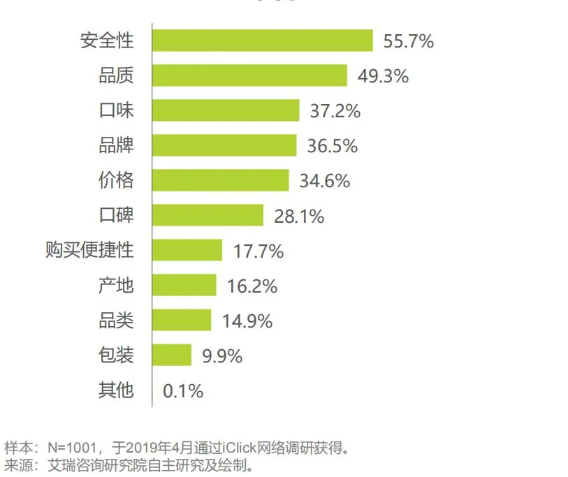 2019年中国用户网购生鲜产品时看重的因素