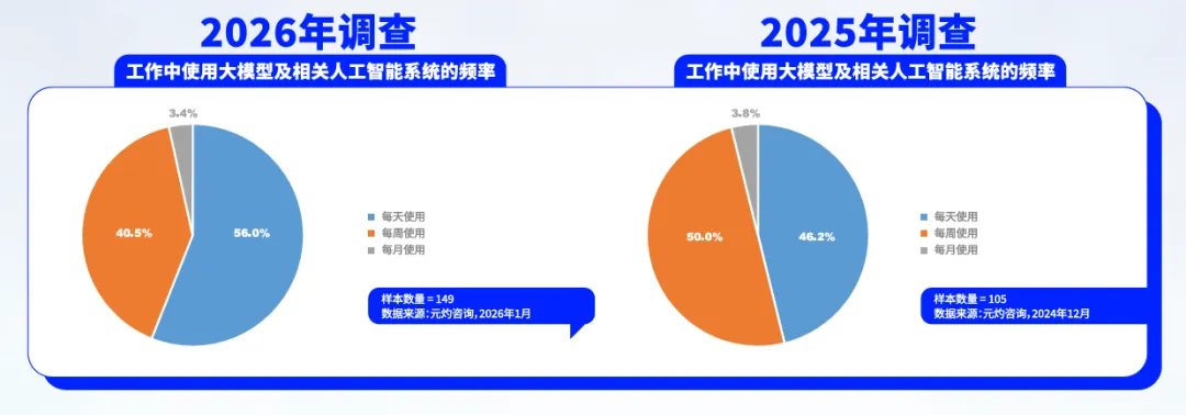 三、企业使用大模型及相关人工智能系统的频率在稳步提升