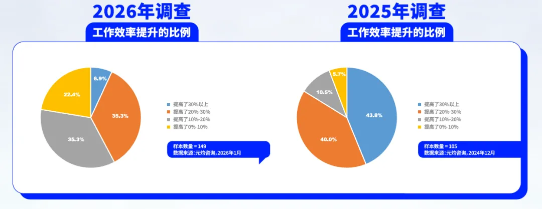四、使用人工智能的工作效率提升保持在较高水平,但边际效率在收窄