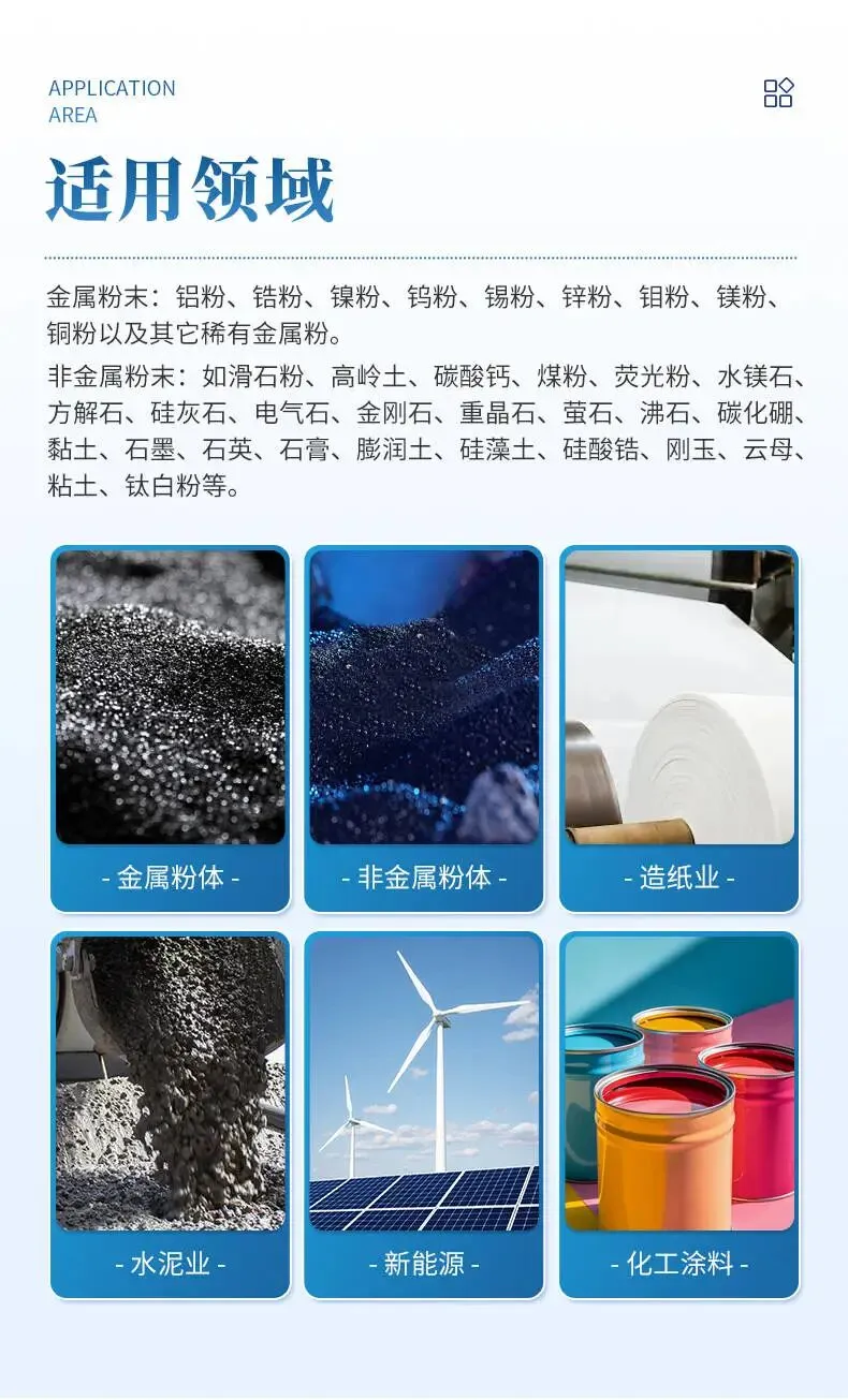 - 非金属粉末:滑石粉、碳酸钙、石墨、石膏、膨润土、钛白粉等