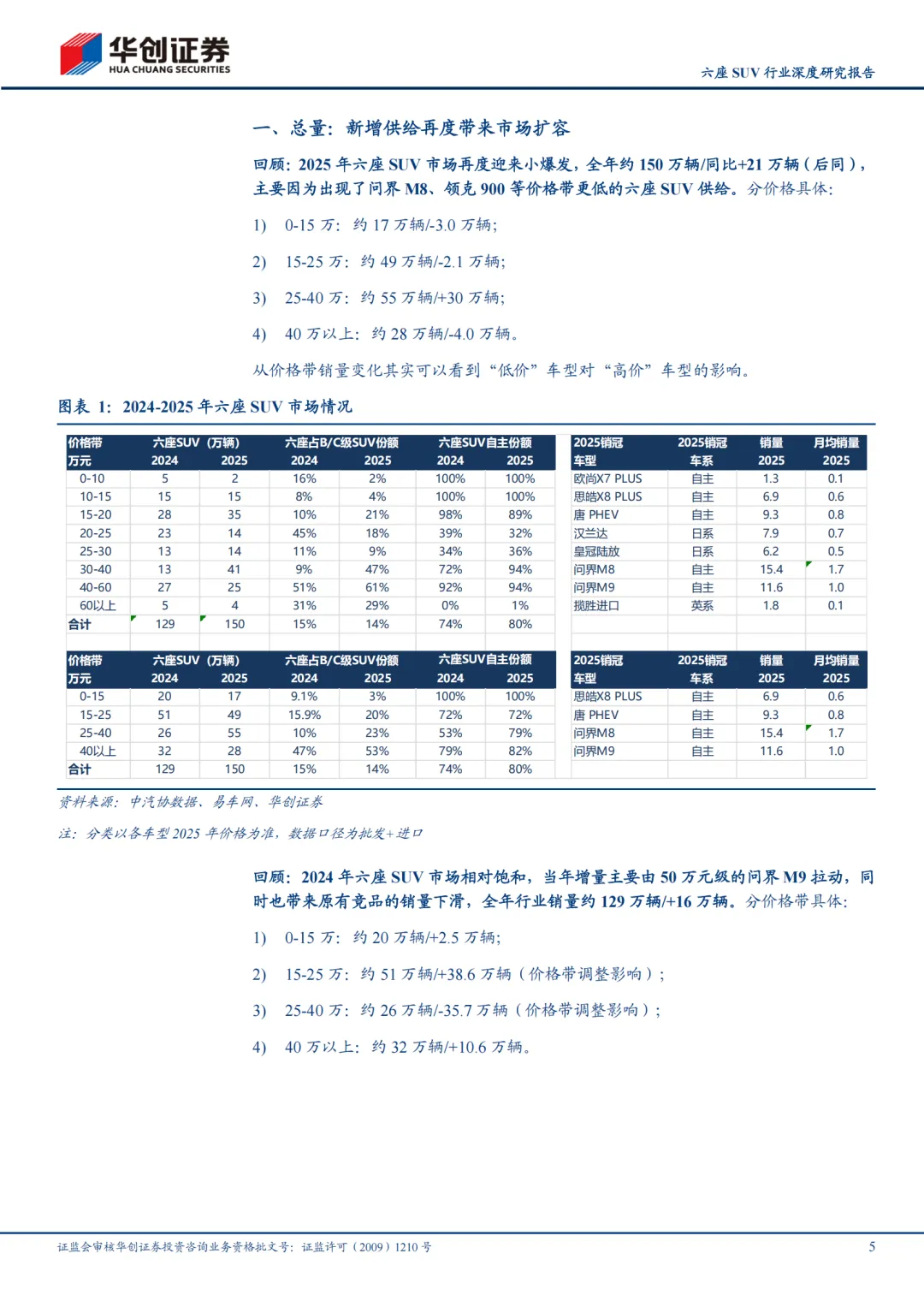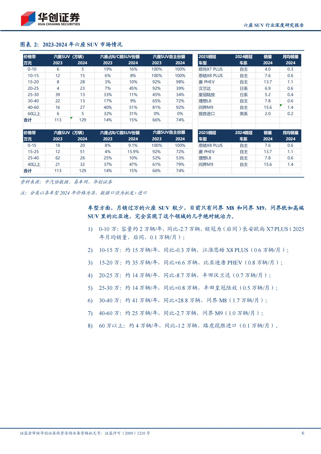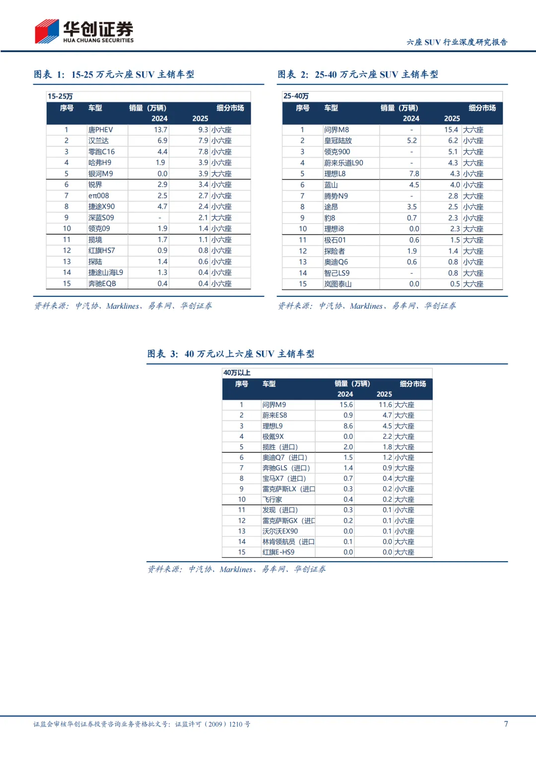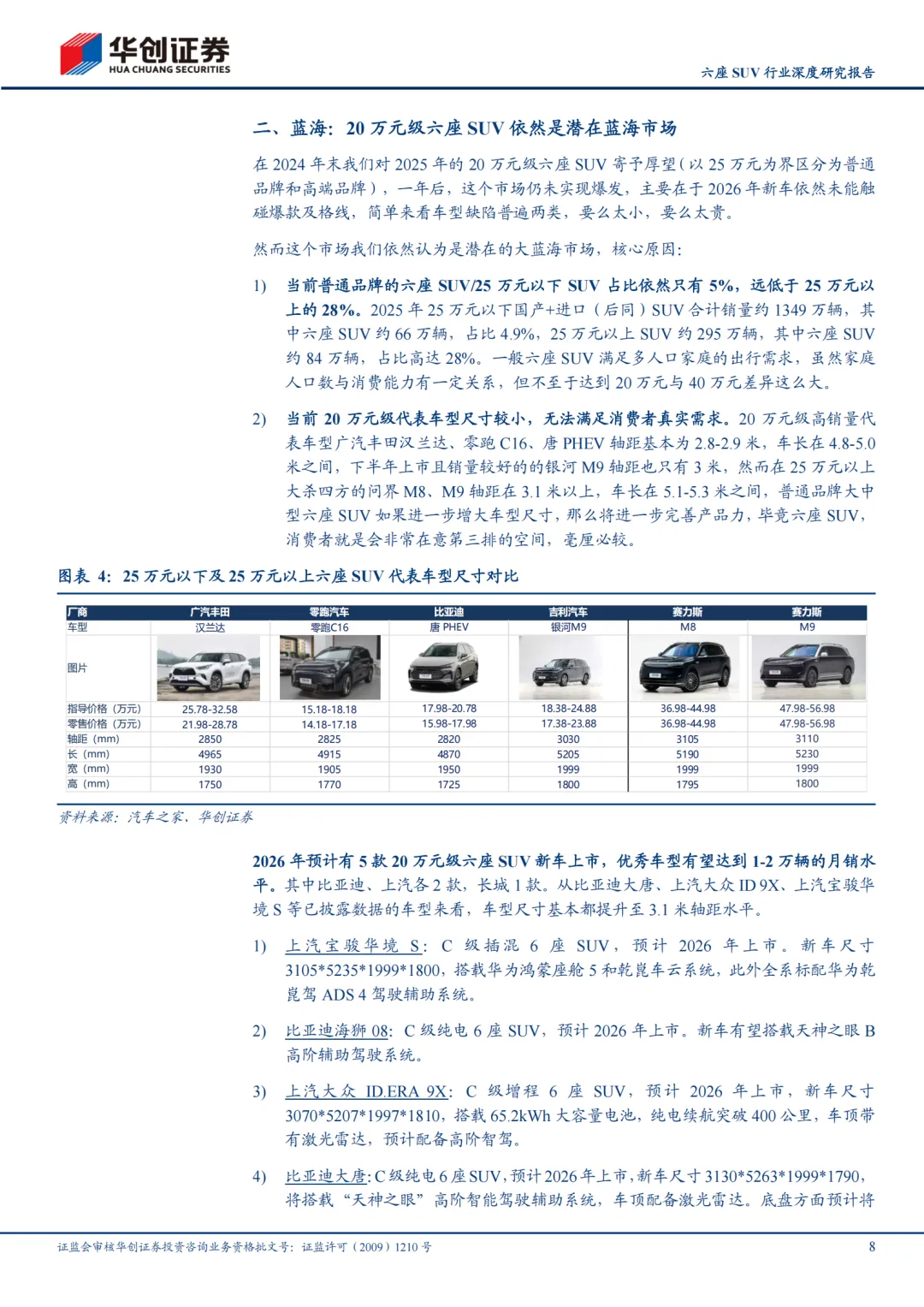 蓝海:20万元级六座SUV依然是潜在蓝海大市场。2025年20万元级六座SUV未实现爆发(66万辆/同比-5万辆,以25万元为界区分为普通和高端品牌),因为新车要么太小、要么太贵,这种情况在2026年可能改变,这个市场依然是潜在大蓝海(根据中汽协批发+Marklines进口数据口径测算,后同):