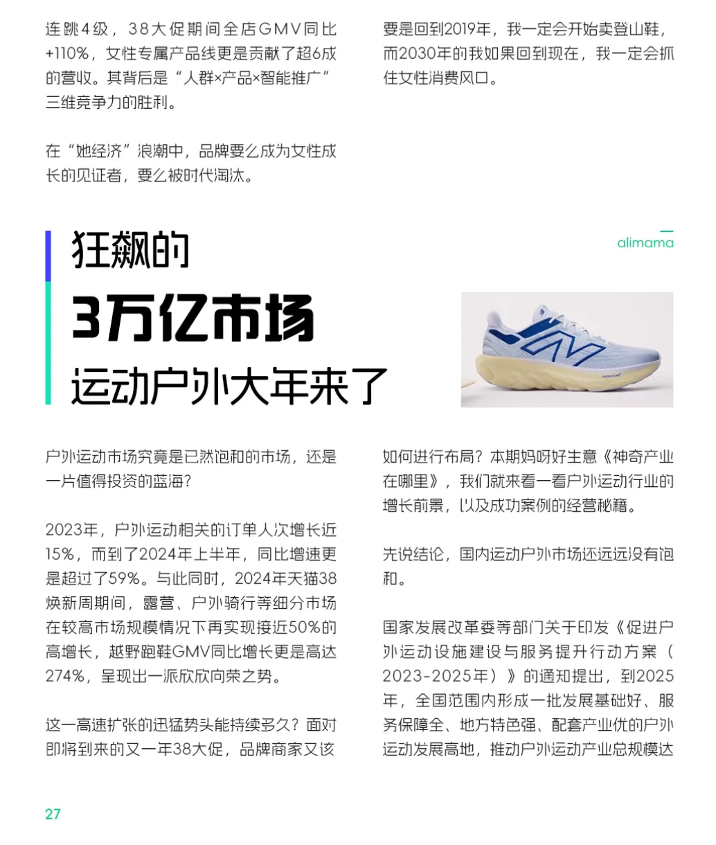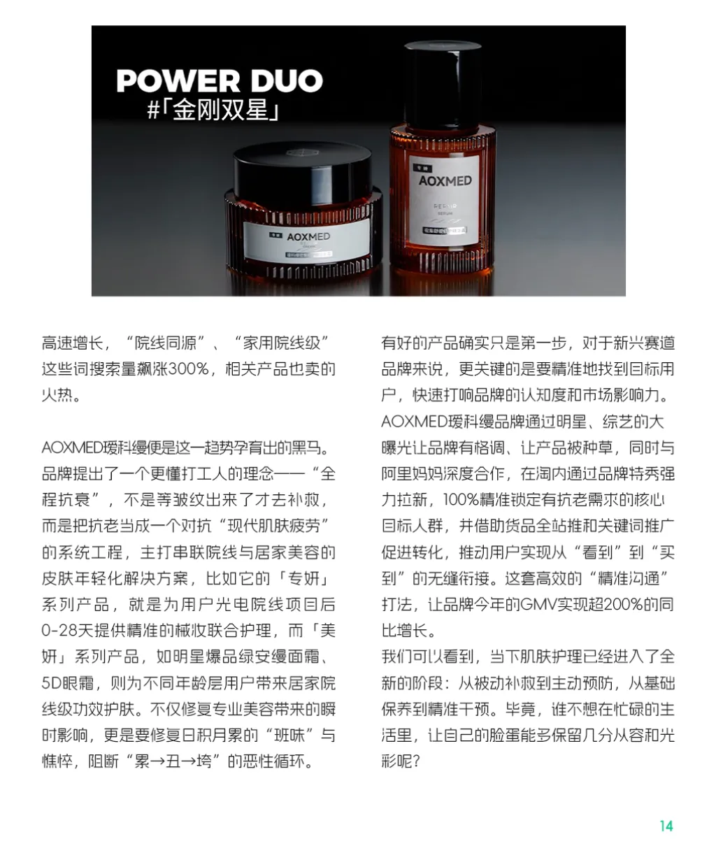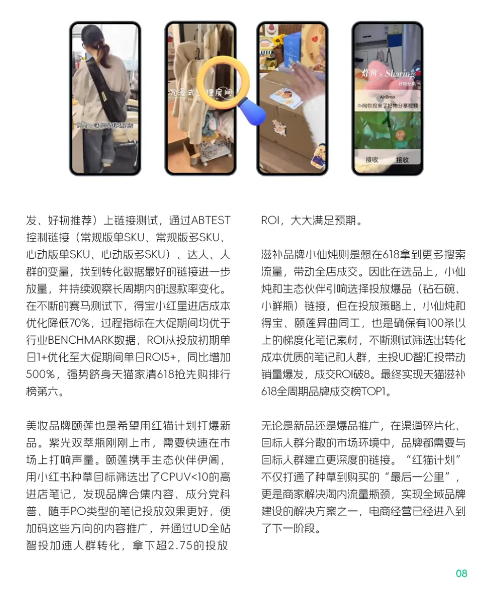 报告聚焦#美妆、#服饰、#运动户外 等多个行业,剖析各赛道新趋势与破局思路:东方情绪护肤成美妆新顶流,服饰行业受高退货率困扰,女性成户外行业核心增量,#宠物 友好型家电、全身#护理 等赛道快速崛起。红猫计划打通小红书与淘系链路成全域经营关键,各品牌依托阿里妈妈数智工具,精准洞察需求、优化投放策略,实现品效协同与增长,行业竞争更注重情绪价值、精准运营与技术落地。