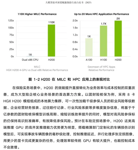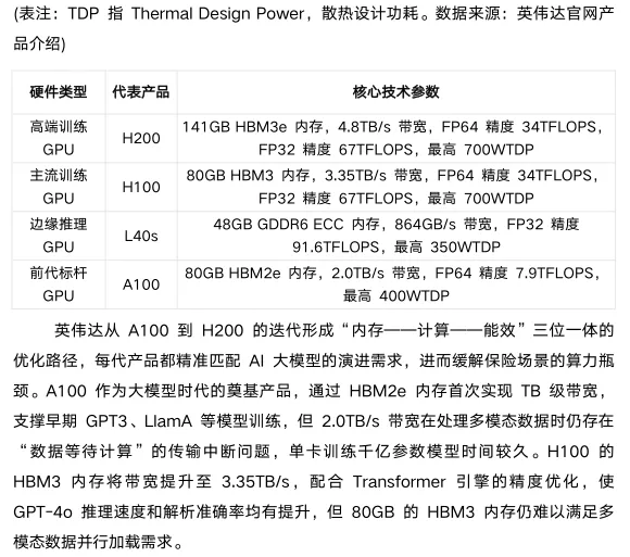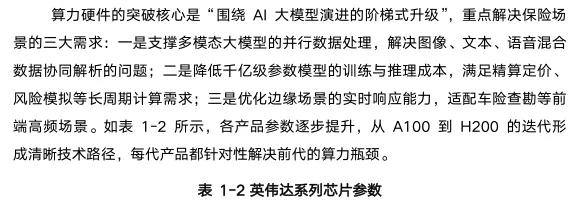 全球算力产业聚焦GPU迭代与大模型深度协同,英伟达A100-H100-H200-L40s形成算力矩阵,搭配“私有集群-云端租赁-边缘节点”混合部署模式,缓解保险行业多模态数据处理滞后、运行成本高的痛点。国产AI芯片也实现跨越式发展,华为昇腾910B、沐曦曦云C600等产品性能对标国际主流,2025年国内市场份额预计突破50%,为保险行业提供自主可控的算力支撑。