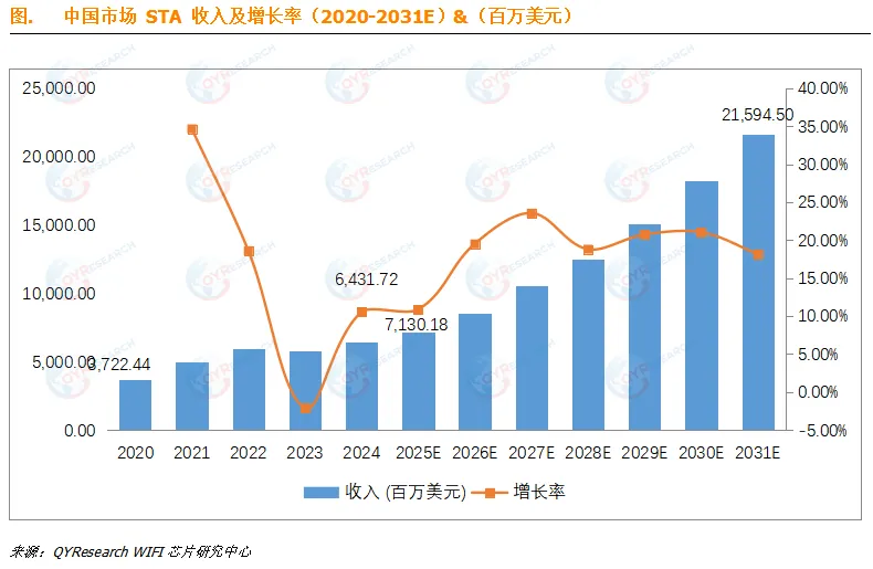 据QYResearch调研团队最新报告“全球WiFi芯片市场报告2025-2031”显示,2024年全球WiFi 芯片市场销售额达到了201.26 亿美元,预计2031E 年将达到541.54 亿美元,年复合增长率(CAGR)为15.74%(2025E-2031E)。