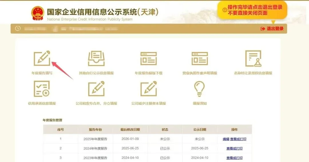 温馨提示:请各位老板按时报送年报,逾期将影响信用记录,记得及时完成哦!