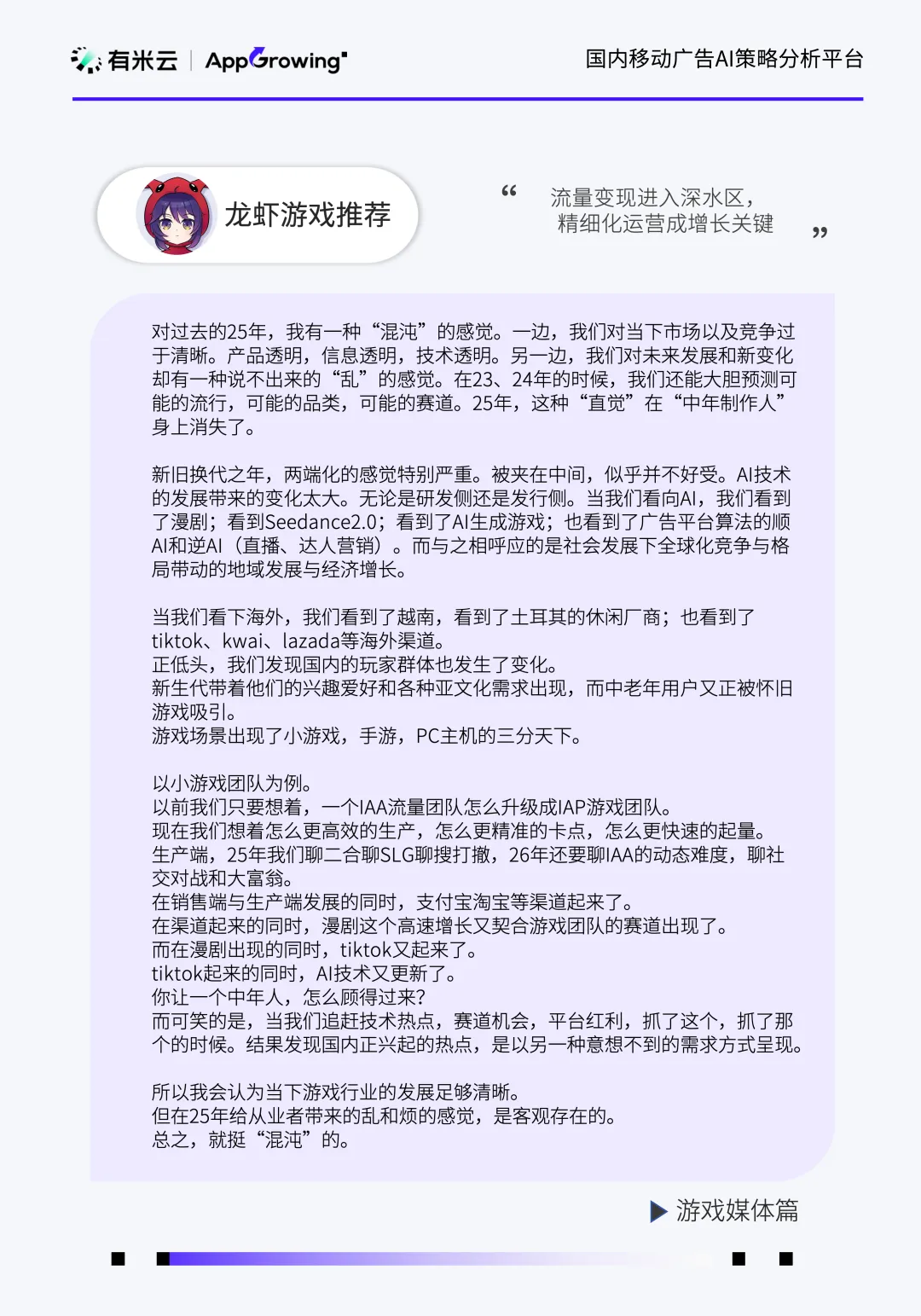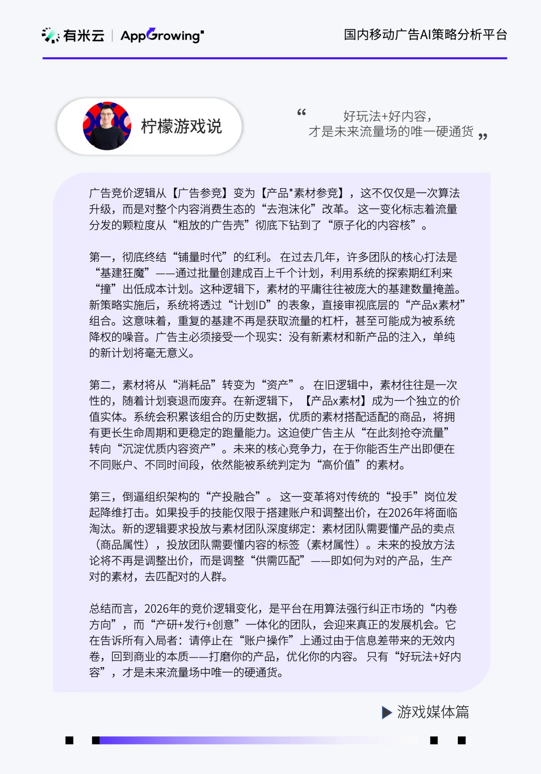 同时我们也邀请了流量平台(巨量引擎、腾讯广告、百度营销、OPPO广告)以及行业媒体(三里屯信息流、买量江湖、伽马数据、柠檬游戏说、龙虾游戏推荐、罗斯基),带来行业前沿的观点见解: