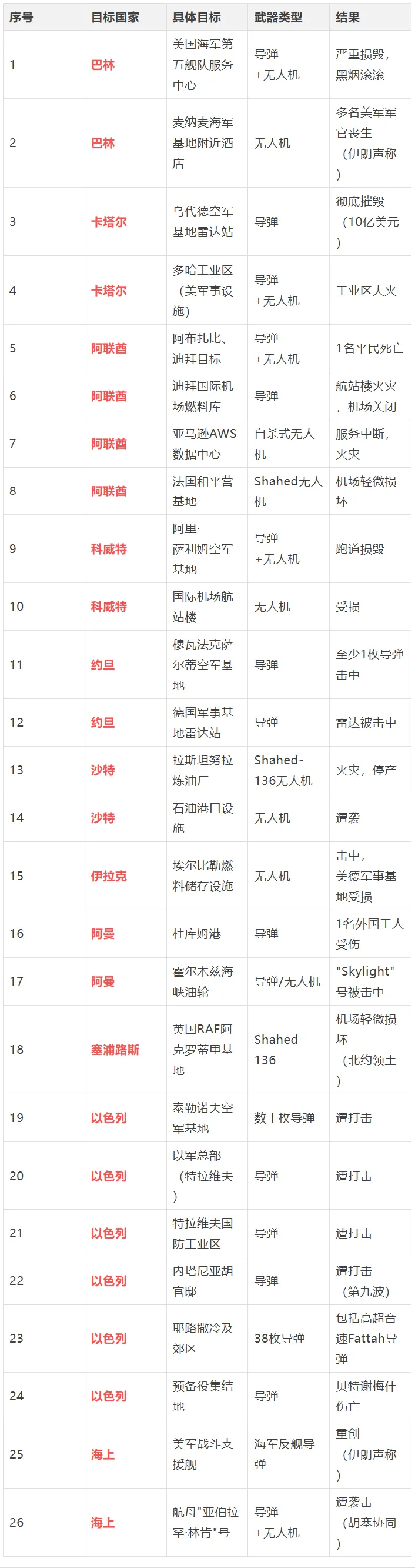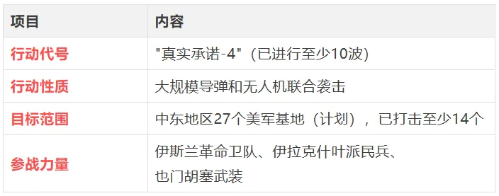 • 伊朗正系统性地攻击海湾国家防空系统,建立"缓冲防空区" • 目标包括美国基地、机场跑道、雷达站,削弱美以拦截能力