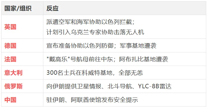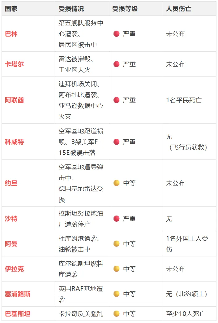 • 伊朗袭击北约领土(塞浦路斯英国基地) • 法国、德国军事基地遭袭 • 沙特能源设施遭袭,可能触发沙特直接介入
